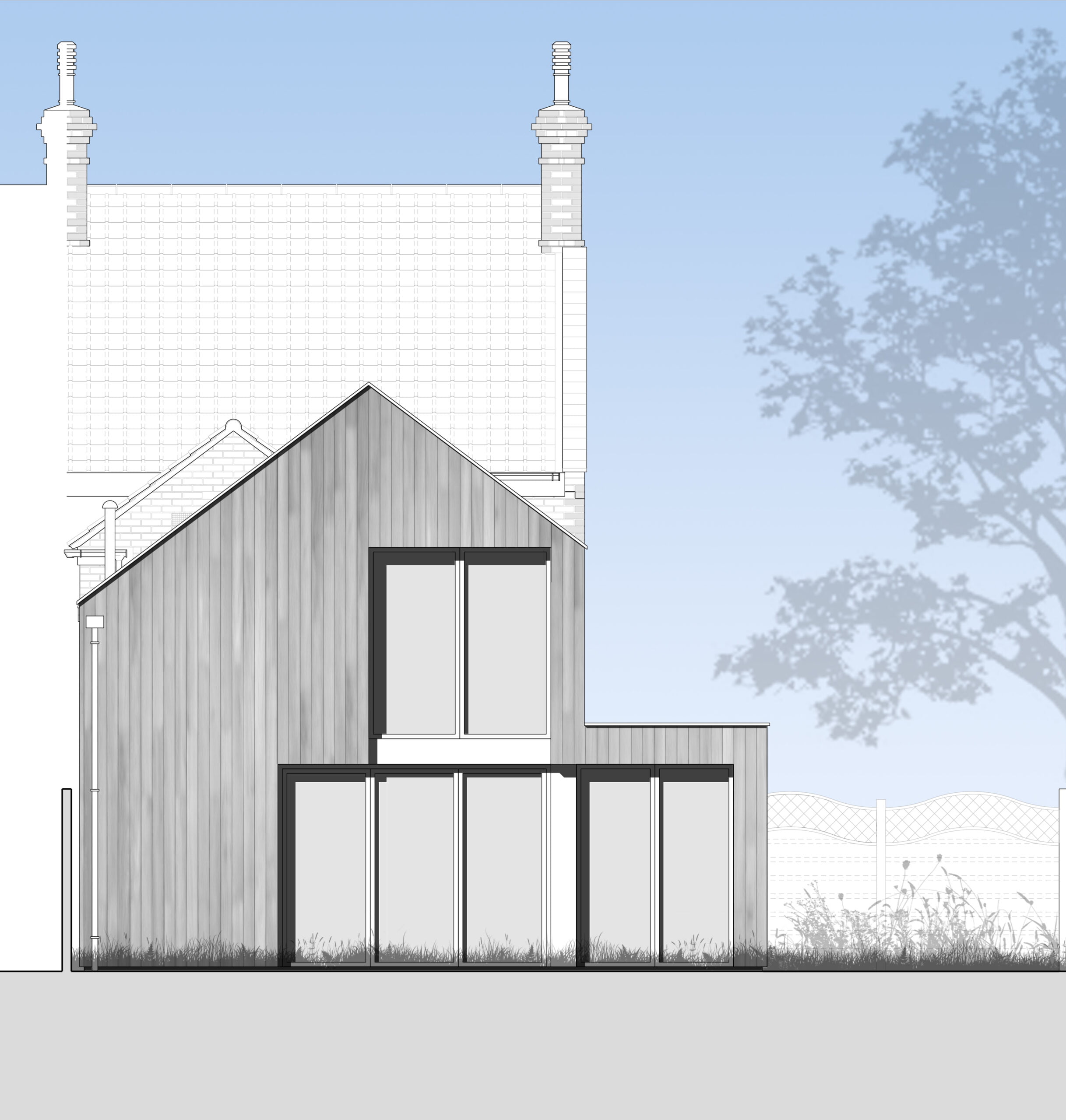 Our innovative design breathes new life into a charming red-brick Victorian property, expanding the ground floor living space and kitchen area into a beautiful garden view room. Upstairs, we’ve created an enlarged master bathroom with a luxurious ensuite. Externally, we’ve chosen a sleek palette of natural hardwood cladding and elegant aluminium framed glazing to perfectly complement the existing architecture.